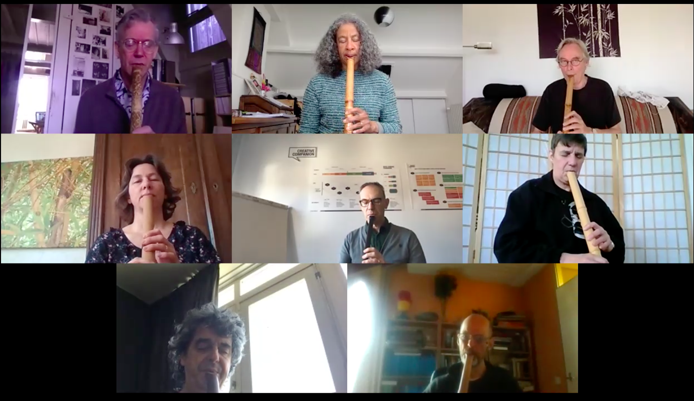 I immediately loved the idea of blowing RO together to connect and join our efforts and thoughts for the planet. I passed on the message to my students and friends in the Netherlands & Belgium and some of them reacted with a strong enthusiasm. This made me think that it would be nice to meet up online to blow together. I had never used ZOOM before, so it was a good opportunity to learn quickly how to use it and set up a daily Robuki-meeting!