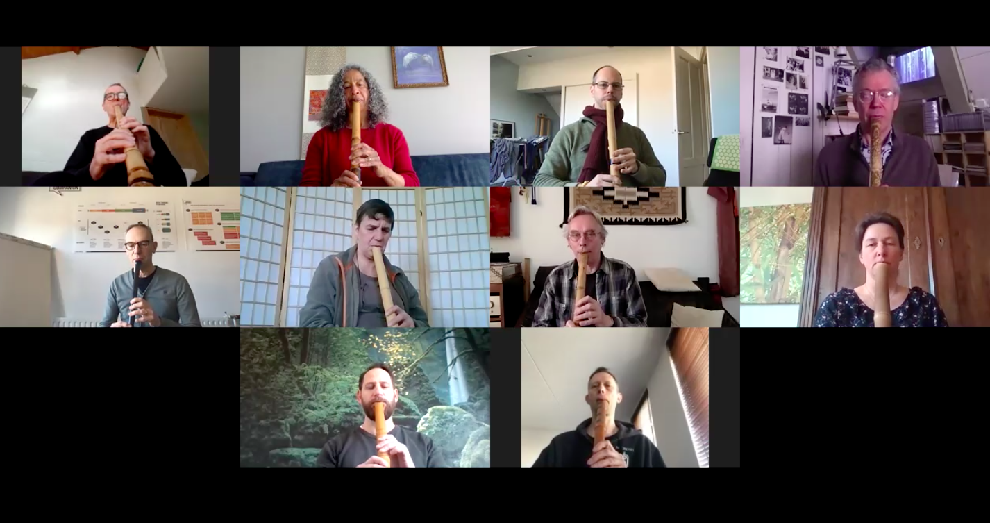 After a week of world wide ROBUKI-WAVE, we actually didn’t stop our daily meetings. Every day at noon, we come online and play together for solidarity and healing. And we know that other shakuhachi players around the world do the same. Every breath is our small contribution to send positive vibes, support and healing to the world.