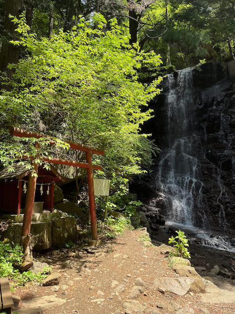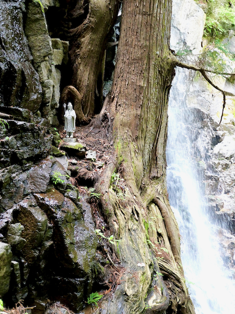 My shyness totally evaporated when I arrived in front of the Haha-no-Shirataki waterfall. As I was alone, I installed myself for playing Robuki for my 108 Ro-buki challenge, next to the little shrine.